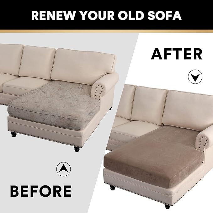 PrinceDeco Sectional Couch Covers Velvet Couch Cover for Dogs Washable L Shaped Couch Cover 1 Piece Individual Sectional Couch Covers with Elastic Bottom(Chaise Lounge,Taupe)