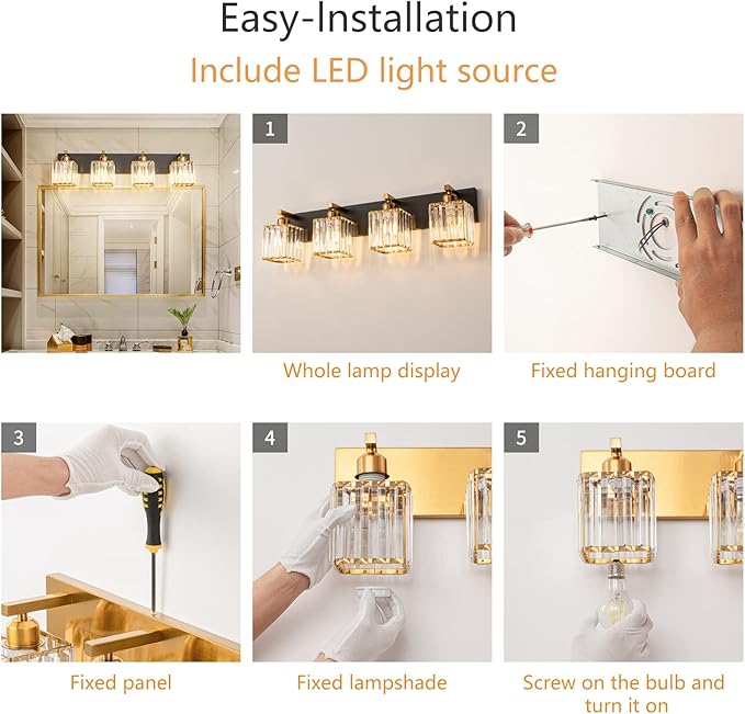 - [Easy Installation] This is designed for American Standard junction boxes and does not require complicated installation procedures. All required parts are included in the package and extra replacement crystal strips are available. Note: For your safety, please install the vanity light under the guidance of an electrician.
