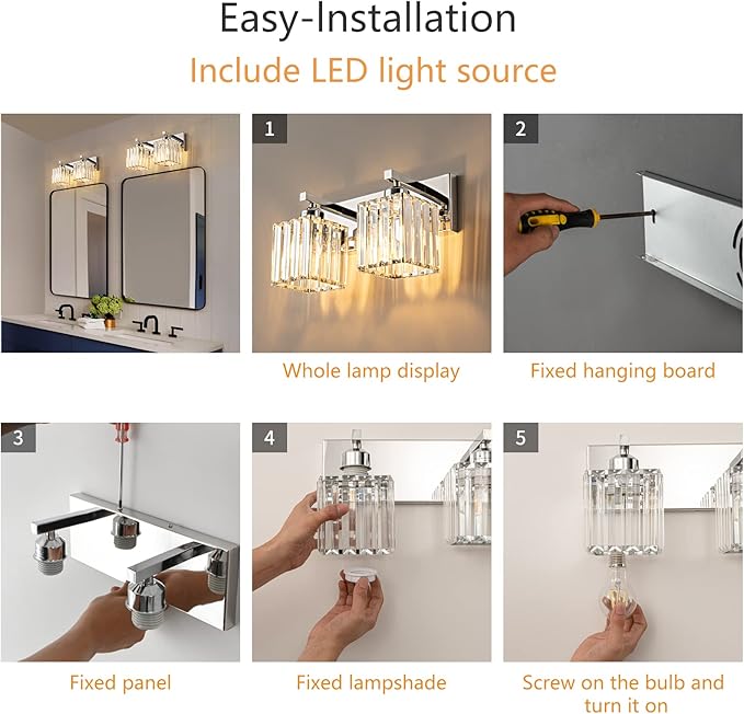 - [Easy Installation] This is designed for American Standard junction boxes and does not require complicated installation procedures. All required parts are included in the package and extra replacement crystal strips are available. Note: For your safety, please install the vanity light under the guidance of an electrician.