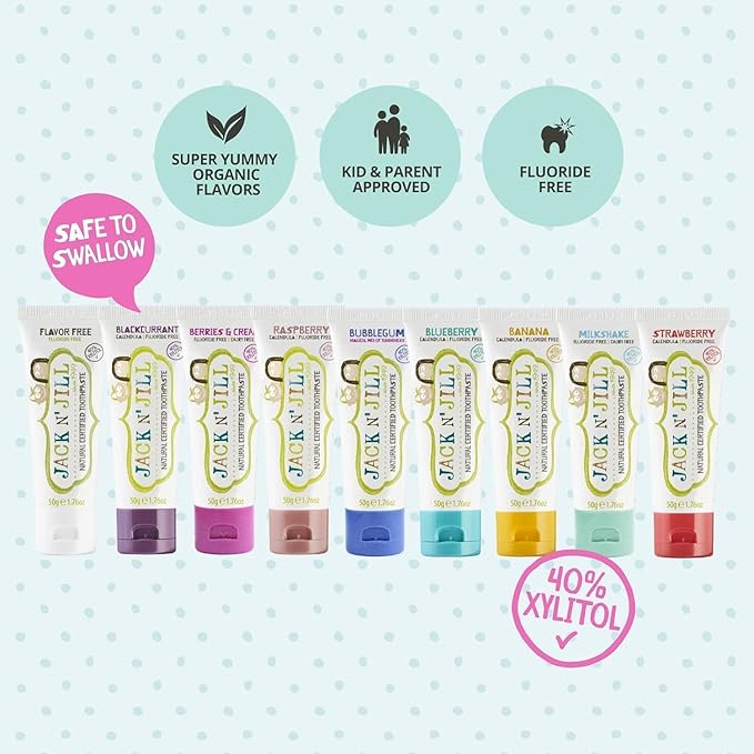 - FLUORIDE-FREE - Made with organic flavorings like Strawberry, Bubblegum, Blueberry, Milkshake, and Berries and Cream, our toothpastes are free from fluoride, sugar, and artificial additives for a trusted choice