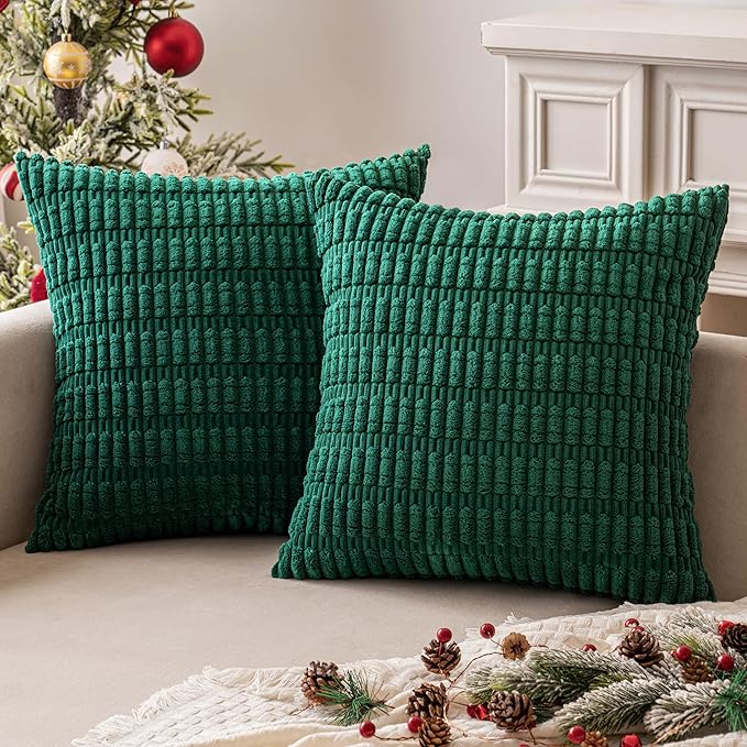 MIULEE Pack of 2 Christmas Dark Green Corduroy Decorative Pillow Covers 20x20 Inch Soft Boho Striped Throw Pillow Covers Modern Farmhouse Home Decor for Sofa Living Room Couch Bed