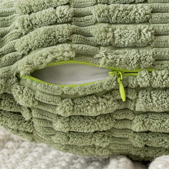 MIULEE Pack of 2 Corduroy Decorative Throw Pillow Covers 20x20 Inch Soft Boho Striped Pillow Covers Modern Farmhouse Home Decor for Summer Sofa Living Room Couch Bed Sage Green