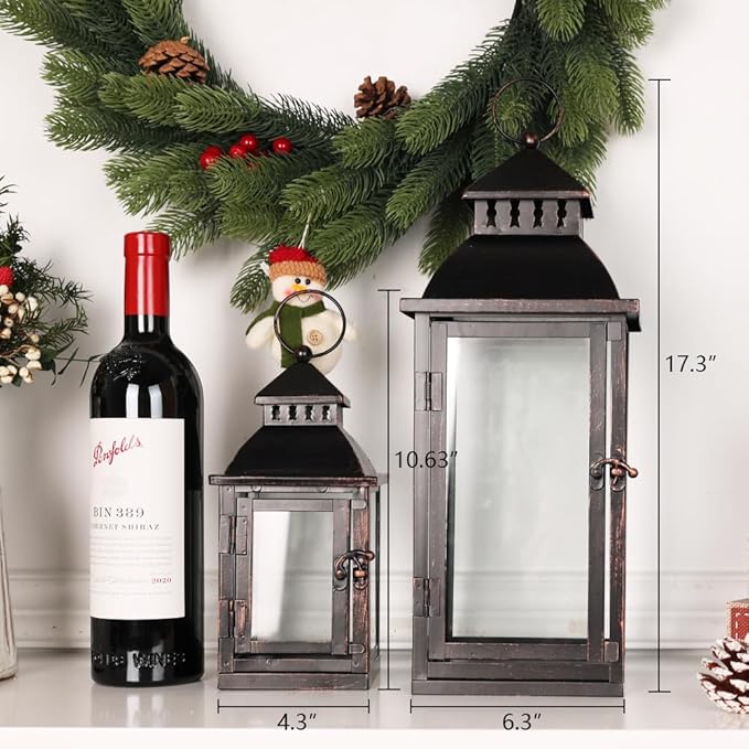- Suitable for Most Outdoor Scenes——The set of 2 Large Bronze vintage candle lantern is perfect for outdoor use. The metal material can withstand wind and rain, while the high-quality glass prevents rainwater from getting in and allows you to see the bright, flickering candles, creating a fantastic atmosphere.