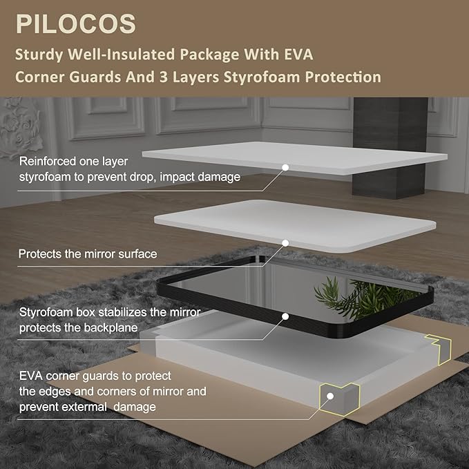 - 🌹【Sturdy and Double Styrofoam Package】PILOCOS full length floor mirror is secured with customized double Styrofoam in carton box passed all rigorous tests including dropping,impact test which is very sturdy and make sure to provide mirrors in perfect condition for you.