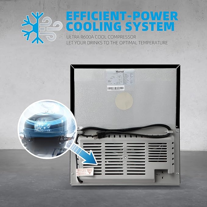 - Efficient Cooling: Beverages Cooler are kept cold by environmentally friendly and efficient R600A refrigerant, which is famous for its low power consumption and durability. Equipped with movable shelving and adjustable leveling Leg. It is convenient for man to custom
