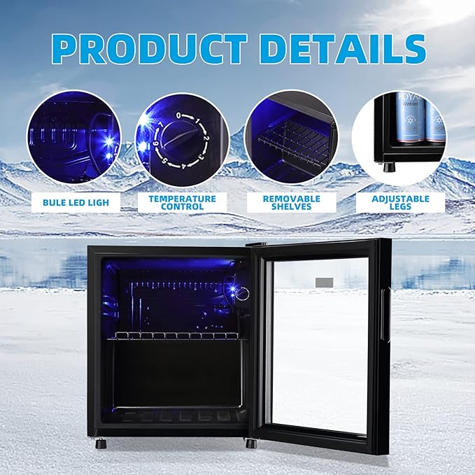 WANAI Mini Fridge Cooler 60Cans Beverage Refrigerator Glass Door Beverage Cooler for Beers Wine Juicer Adjustable Shelves LED Lights for Home, Office or Bar