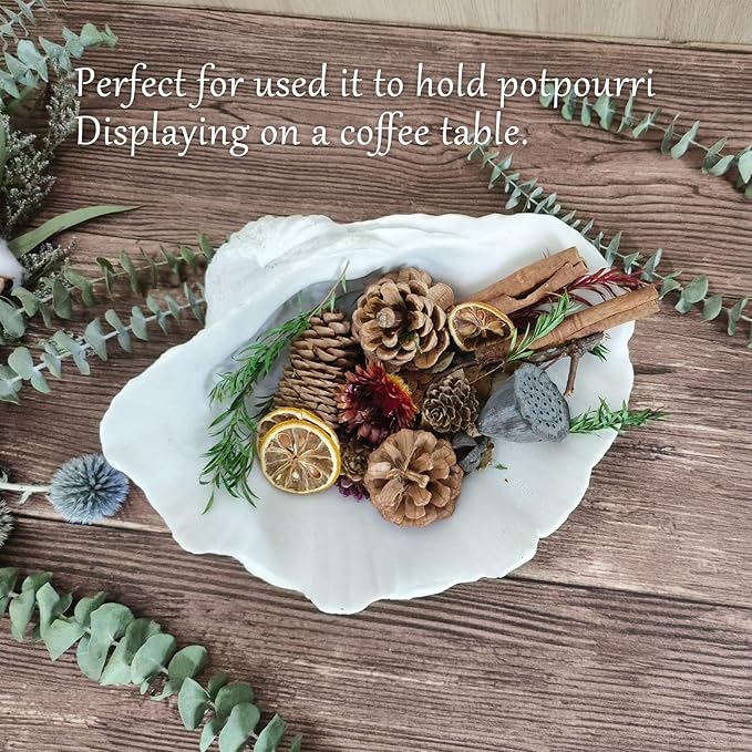 - 【Versatile Decor】White Large Clam shell decorative bowls available in two size and multiple colors to hold nice amount of objects for any season - Christmas, fall, Thanksgiving,Birthday Party, Daily Decoration.Share with your family members, friends, colleagues and nautical lovers