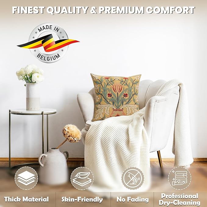 - Exclusive Design Excellence: The decorative pillow covers are made of high-quality jacquard woven fabric, 100% cotton for extreme comfort and durability. The designs of these William Morris pillow covers are woven with precision using the most vibrant colors. The zippers are hidden and overlock stitch seams create an appearance of sophistication while providing durability for any home decor