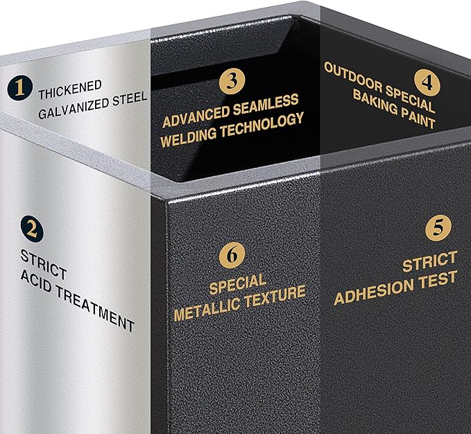 - 【METAL PLANT BOX】This planter box is made from a fully seam welded thick galvanized steel, and adopts outdoor special baking paint, giving the surface a premium metallic color and special texture through advanced powder injection process.