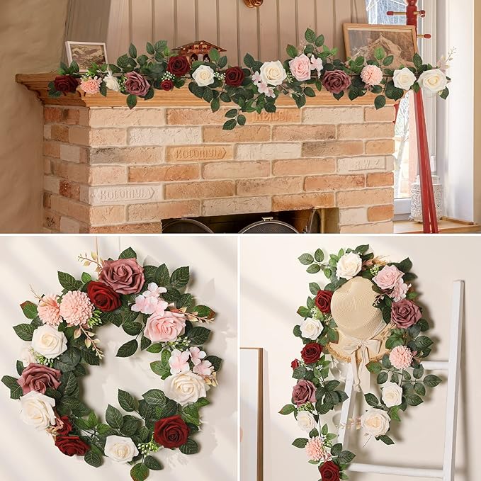 - Unique Design:The floral garland is mainly composed of simulated bouquets, green leaves, and vines. Dotted with Rose and berry is adopted to make it more vivid and colorful, creating a special sense of layering and romance.