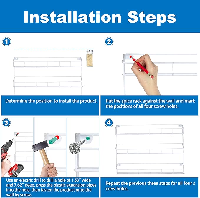 - [Easy Installation]: This spice organizer includes all necessary hardware, making installation a breeze. Set it up in just 3 minutes.