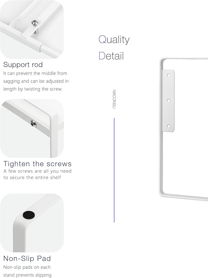 - PREMIUM QUALITY: Made from sturdy 1mm metal, this cabinet shelf can hold up to 50LBS of household items. It features a load-bearing rod in the middle, ensuring even balance and preventing the shelf from collapsing inward.