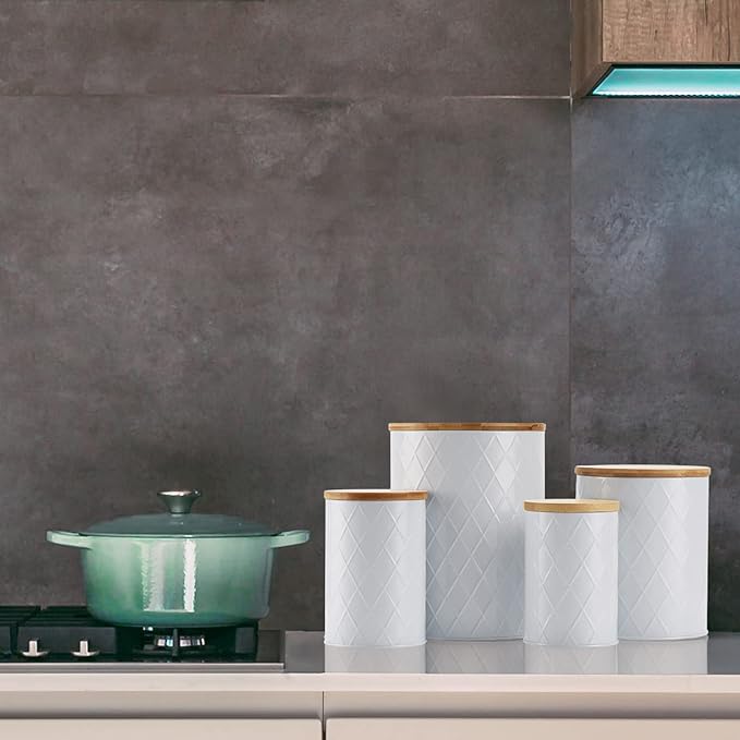 White Kitchen Canisters Set with Bamboo Lids, Airtight Sugar, Flour, Coffee, Cookie Storage Canister Sets for kitchen Countertop, Farmhouse kitchen decor, 4 Pack