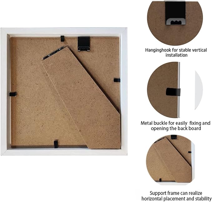 - Easy to Use : This shadow box can be placed upright on a tabletop, or easel-back for tabletop display. And the shadow box can be hung directly on the wall through the hanging hook on the back.