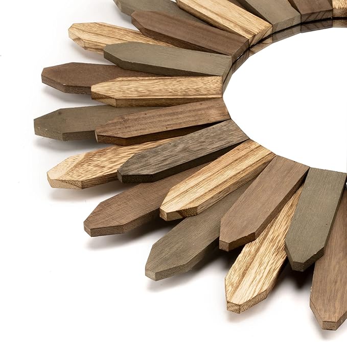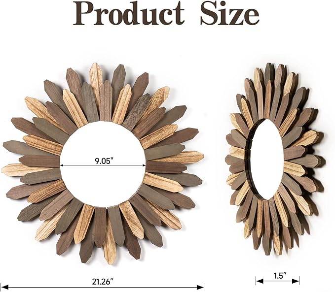 - Boho Home Decor for Living Room: This 21 inch large decorative mirror is made of solid wood and features three rustic colors that give it an antique accent, while the beautiful wood texture adds to its charm. Unlike traditional glass mirrors, this mirror is made with acrylic panels that won't crack and break like glass. This stylish and eye-catching decor piece is the perfect addition to any home decor