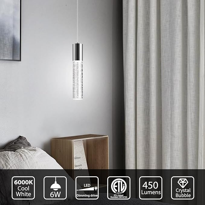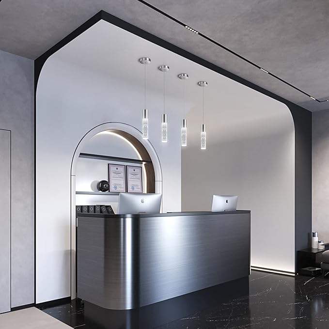 - 【Simple Modern style】:Modern pendant light stainless steel sconces and cylindrical crystal bubble lamp posts will add more luxury, noble, and artistic atmosphere to your home, let your island light add a high-end atmosphere to your kitchen.