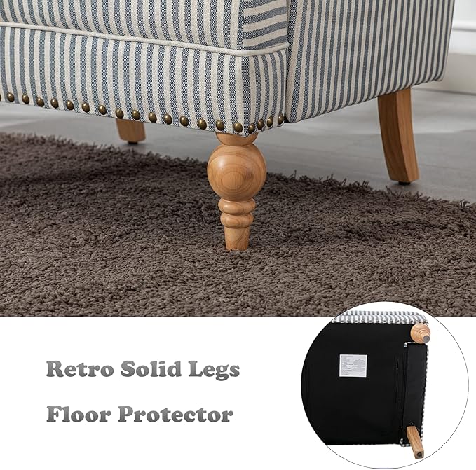 chairus Linen Accent Chair for Living Room Set of 2 Upholstered Mid Century Modern Single Sofa Chair with Solid Wood Legs Comfy Reading Armchair for Bedroom/Office Room/Recption/Lounge, Blue Stripe