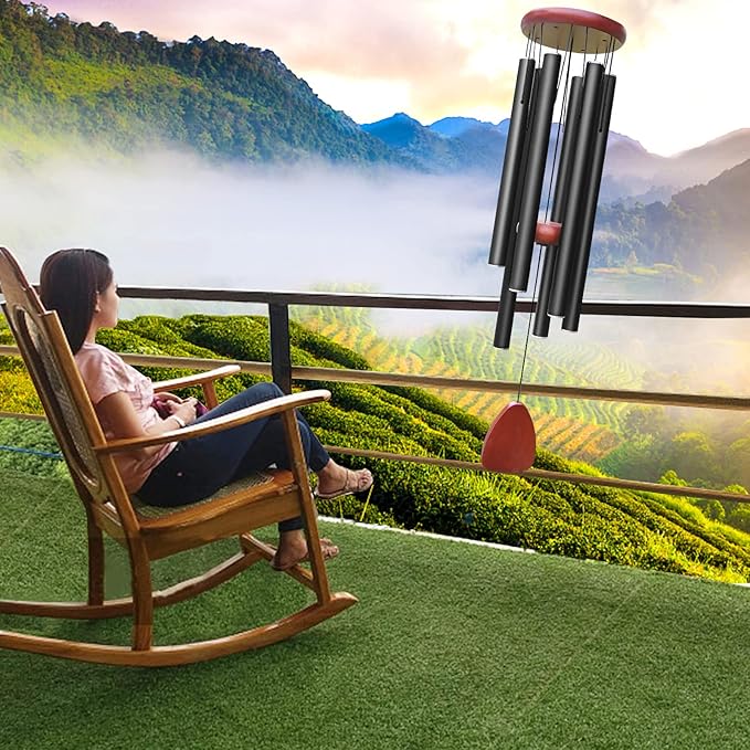 Large Aluminium Wind Chimes Outside, Soothing Melodic Memorial Sympathy Wind Chime, Suitable Outdoor Garden Decor, Gift for Mom Women Neighbors (Black Wind Chimes-36 in)