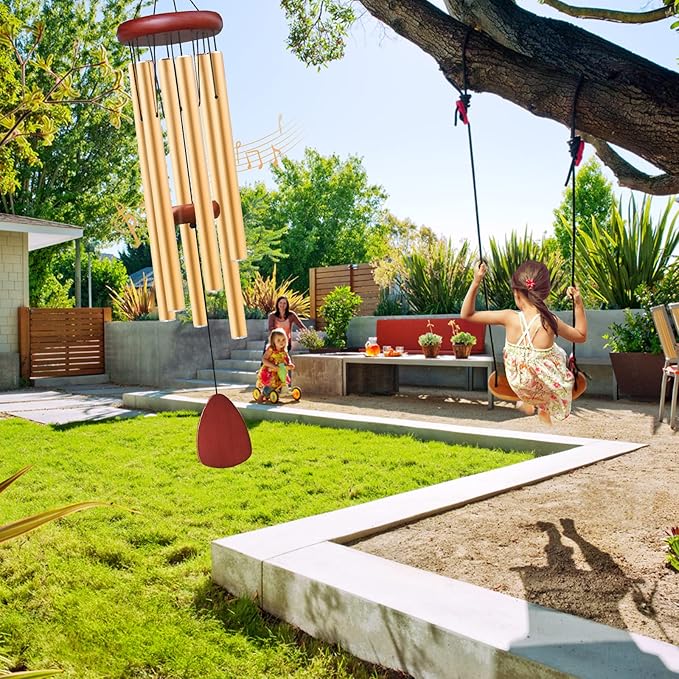 - 【WIND CHIME DESIGN】Wind chime is made of aluminum pipe and pine. The total length of the wind chime from the top's large S-shaped the heavy duty hook to the bottom's catcher is 36 in The wood is made of wear-resistant and non-cracking pine. The adjustable wooden striker allows you to adjust your favorite position at will. 6 classic anodized aluminum tubes have excellent corrosion resistance and wear resistance, and the length ranges from 8.8" to 12.8 in vary