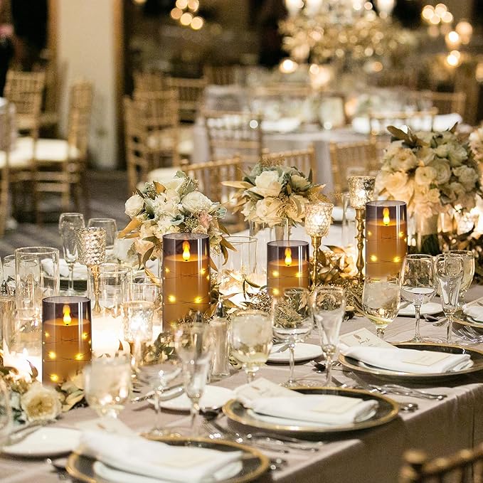 - 3D Wick and Realistic Appearance, Unbreakable Design - Made of premium acrylic, 3D black wick realistic flicker design. Compared with glass radiance candles, premium imitation glass acrylic shells make the battery candles stronger and long-lasting. Through the clear shell, feels and looks like real wax pillar candle flame