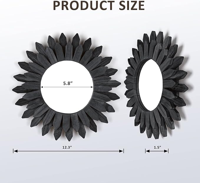 - Easy to Hang: Come with set of 2, measure at 12 inch diameter with wood frame and diameter of 5.8 inch for mirror; Hang this stunning mirror in your bedroom over your bed, in your hallway or entryway, over your living room sofa.No any assembly, quite easy to hang on the wall; Comes with anchor and screw