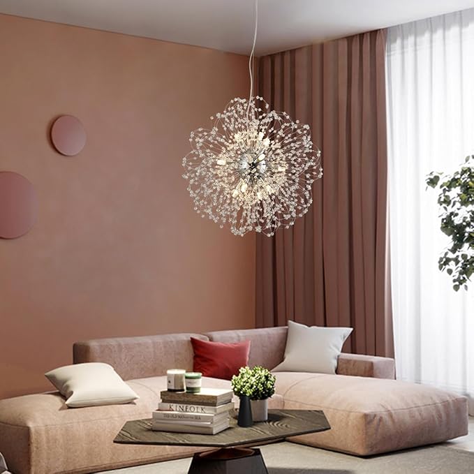 - 【Flower Design】 When you turn on the sputnik chandelier, you will feel that the chrome chandelier is like a sparkling flower. The crystal strings shine brightly, reflecting charming light. When you turn off the farmhouse chandelier, it's like a flower, decorating your home well and adding beauty to it.