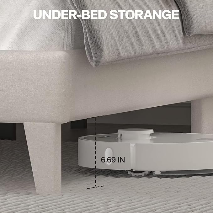 - STURDY PLATFORM BED: The upholstered wooden structure bed frame consists of 12 high-quality solid wood slats and 9 supporting legs. The overall structure allows the platform bed frame to be more evenly loaded and provide 1000 lbs of support for your mattress! The mattress no longer has to worry about sagging, providing you and your family with a safe and comfortable sleeping environment.
