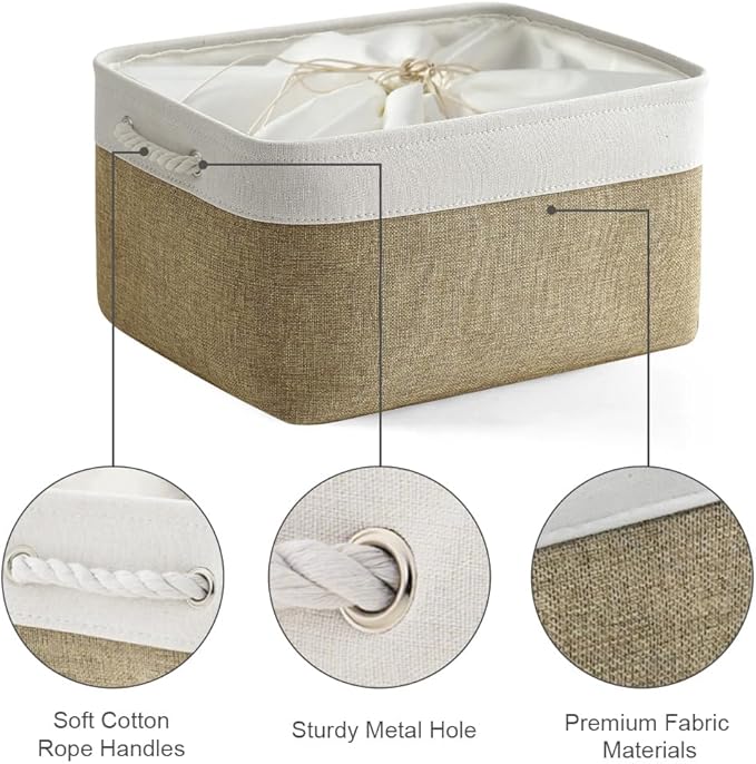 TheWarmHome Organization and Storage Basket for Organizing - X Large - 3 Pack 17.7L×13.8W×9.8H in Collapsible Storage Bin for Shelves, Fabric Basket for Gifts Organizer Toy Closet (White & Khaki)
