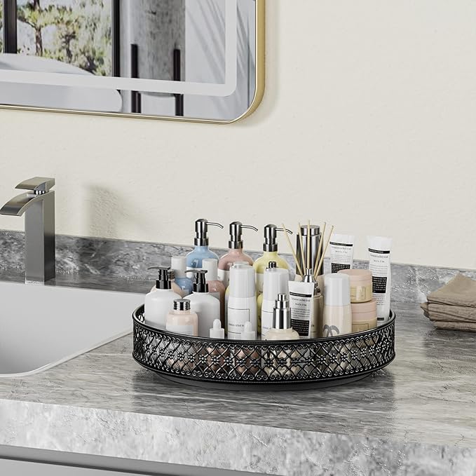- Floral Raised Edges:The heightened edges with beautiful classic floral design . not only provide a special decorative vision but also avoid items from falling when rotating , it's more safe to move this organizer tray from one place to another . Open design make the items visible and easy to access. If you have any questions, please feel free to contact us, Ovicar will provide 100% satisfaction after service.