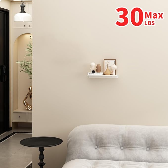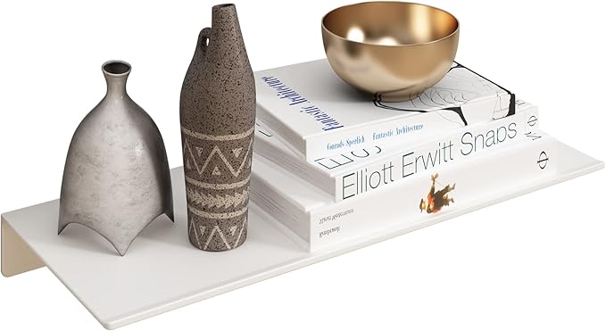JOOM White Metal Floating Shelf - Floating Shelf, Small Bathroom Shelf, Display Shelves for Wall Storage (12 in)