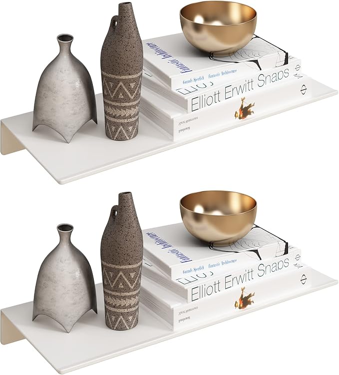 JOOM White Floating Shelves for Wall Storage, Metal Wall Shelves for Living Room, Bathroom, Kitchen, 12” Small Display Shelves for Collectibles(2 PCS)