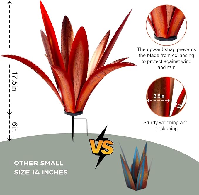 - [Simple assembly]Easy to assemble rust Metal Tequila Agave Plant features rustic yard decor, just place it wherever you want, perfect for decorating gardens, courtyards, ponds, terraces and lawns. It can be placed on the ground, on the terrace, as a decorative pot - outdoor and indoor.