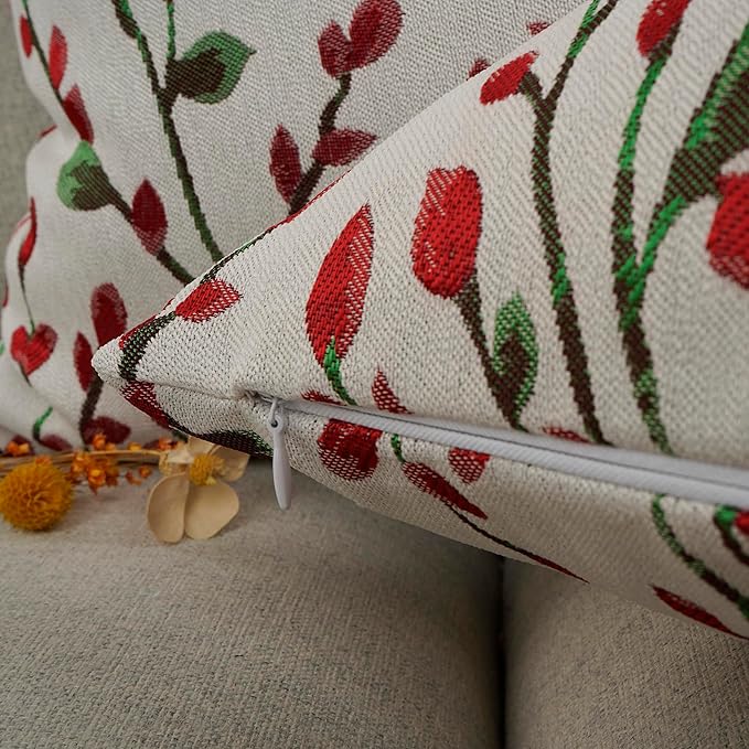 YOUR SMILE Classical Embroidery Jacquard Christmas Red Square Decorative Throw Pillow Case Cushion Cover,12x20 inch