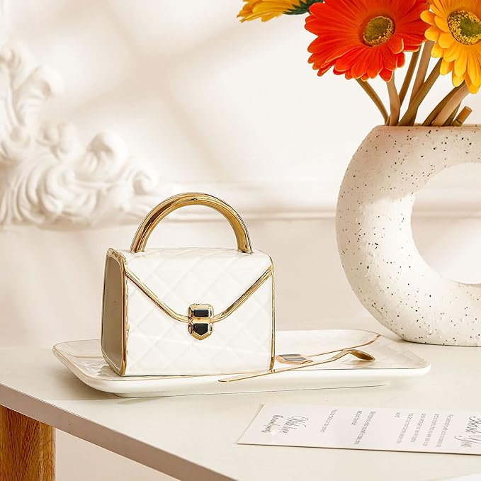 - Delicate Coffee Mug Set: the package comes with 1 piece of handbag shaped white mug and it is equipped with a spoon and saucer, which is thoughtful set for your daily use; They are well packaged in a gift box, reading for your gift giving needs