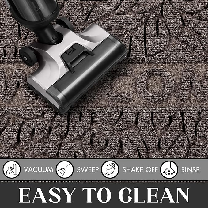 Yimobra Welcome Door Mat Outdoor Indoor, Non Slip Front Doormats, Heavy Duty Rubber Backing, Low-Profile Entrance Mat, Absorbent Resist Dirt, Easy Clean Patio Garage Floor Mats, 29.5 x 17, Brown