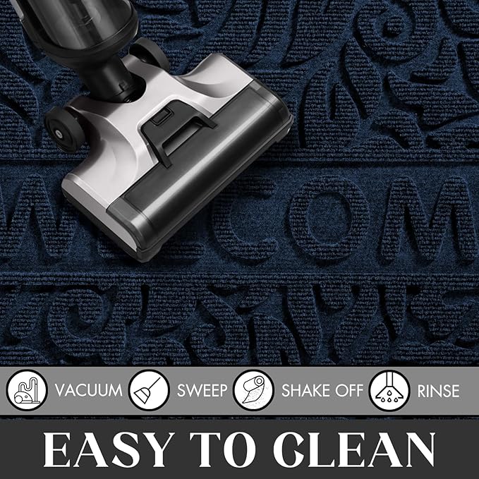 Yimobra Welcome Door Mat Outdoor Indoor, Non Slip Front Doormats, Heavy Duty Rubber Backing, Low-Profile Entrance Mat, Absorbent Resist Dirt, Easy Clean Patio Garage Floor Mats, 29.5 x 17, Blue