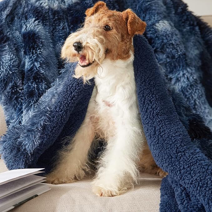 Bedsure GentleSoft Fluffy Tie Dye Navy Blue King Size Blanket for Bed, Thick Soft Sherpa Faux Fur Fleece Bedding Fuzzy Plush Winter Warm Large King Blanket, Cozy Blue Gifts for Men Women, 108x90