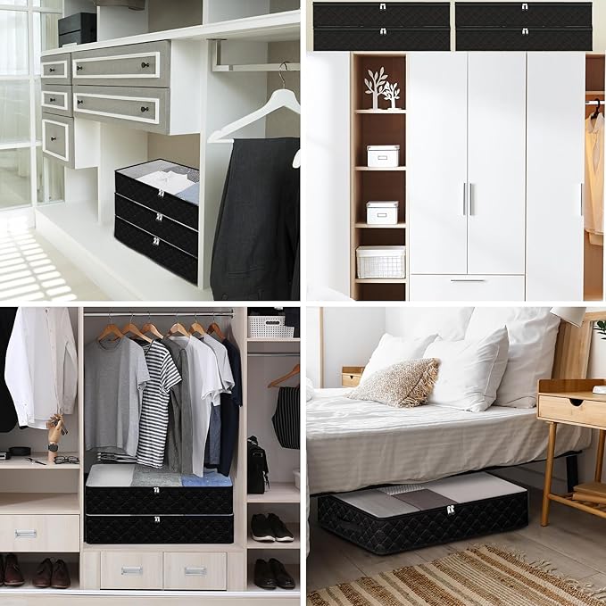 Fixwal Black Underbed Storage Bags with Clear Window and 2 Reinforced Handles Under Bed Storage Containers for Clothing, Bedding, Comforter (6 Pack)