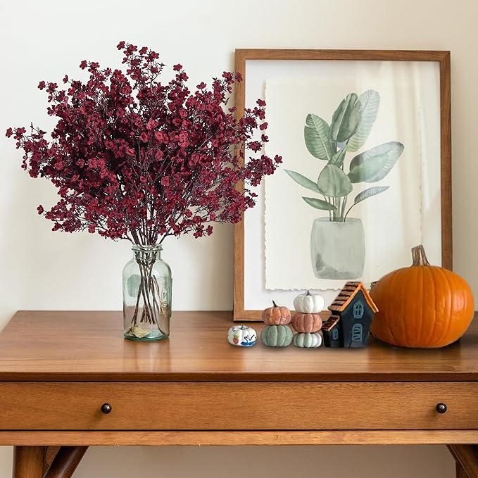 Sggvecsy 15 Pcs Babys Breath Artificial Flowers Gypsophila Bouquets Bulk Real Touch Fake Silk Flowers for Home DIY Floral Arrangement Table Centerpiece Fall Thanksgiving Autumn Decoration (Burgundy)