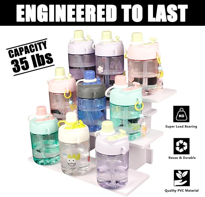 - STURDY AND DURABLE: This tiered display stand is made of 0.4 inch thick high quality polyvinyl chloride material for extra durability and safety, the bottom uses reinforced crossbars for added strength and stability and can hold up to 35 lbs, the craft fair rack has a smooth and beautiful surface with a gorgeous and stylish appearance it is one of the most practical craft fair display racks for craft shows.