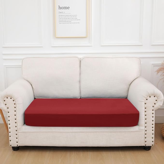 - [Stay in Place] The unique elastic band design makes the individual couch cushion covers more fit the cushion, easier to install, and more concise in appearance. Even if the child bounces on the sofa, the pet plays on the sofa, or sleeps on the sofa, the waterproof cushion covers remains on the sofa or chair.