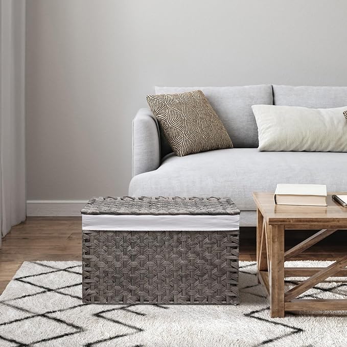 - [Washable Lining Bag] The included cotton lining bag is easily washable, ensuring the cleanliness of your stored items. This lining bag is securely fixed on the wicker basket with lid using two ropes, providing added stability and convenience