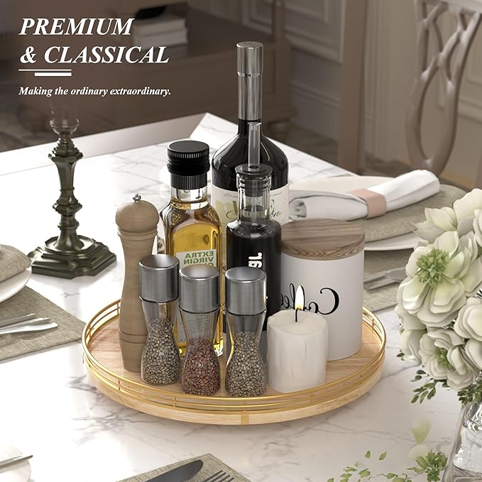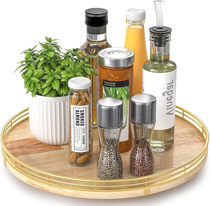 - πππππππππ πππ:This lazy susan is enough to be used nearly anywhere, perfect in the kitchen, cabinets, dining room, office, etc. on your kitchen or dining table for organizing condiments, napkins, decor, candles. Easily reach all your medicine, spices, canned goods in your pantry. Next to your stove, hold all the essentials essences, bowls, greenery, and a butter dish. Good idea for the office desk and craft room to organize. Keep your coffee stuff perfect at your coffee station.