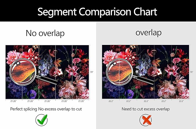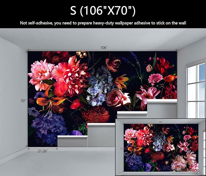 - Mural Size: The total size of this mural wallpaper is 106" x 70" / 270CM x 178CM (W x H), cut into 5 pieces, each measuring 21.26" x 70", for easy installation.