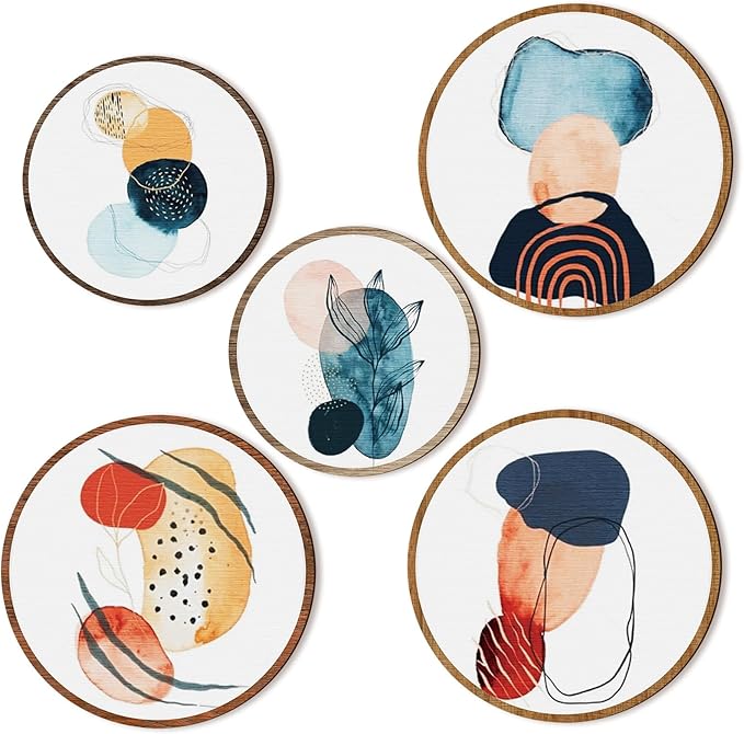 - Proper Size for Display: there are 2 kinds of sizes of the aesthetic wall art, 3 bigger ones measure about 10 inches/ 25 cm in diameter, and 2 smaller ones are about 8 inches/ 20 cm in diameter, all of them are about 0.2 inch/ 0.5 cm in thickness, proper size to catch people's attention