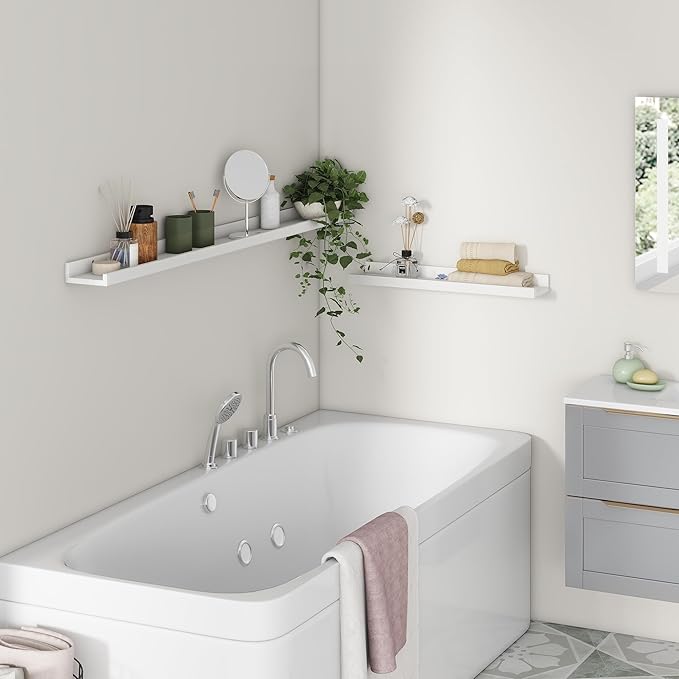 Picture Ledge Shelf for Wall, 24 inch Solid Pine Wood Nursery Book Shelves 2 Packs, Floating Ledge Shelves for Kids' Room Bedroom Bathroom Living Room Photo Frames Office Nursey Wall Decor, White