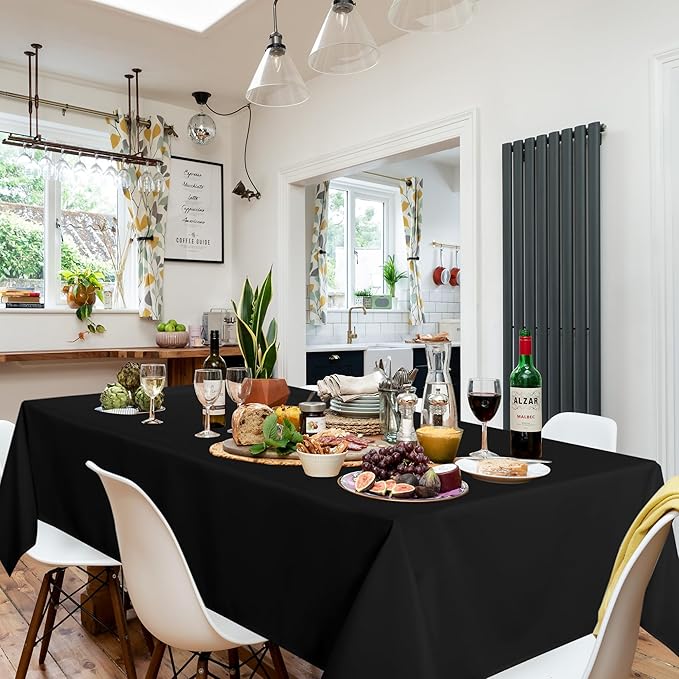 sancua 6 Pack Black Tablecloth 60 x 84 Inch, Rectangle Table Cloth for 4ft Tables - Stain and Wrinkle Resistant Washable Polyester Table Cover for Dining Wedding Banquet Party Buffet Restaurant