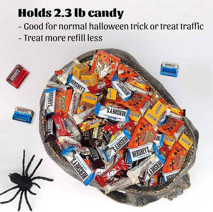 - 【HOLDS 100+ CANDIES】Deep skull bowl fits over 100 wrapped treats.