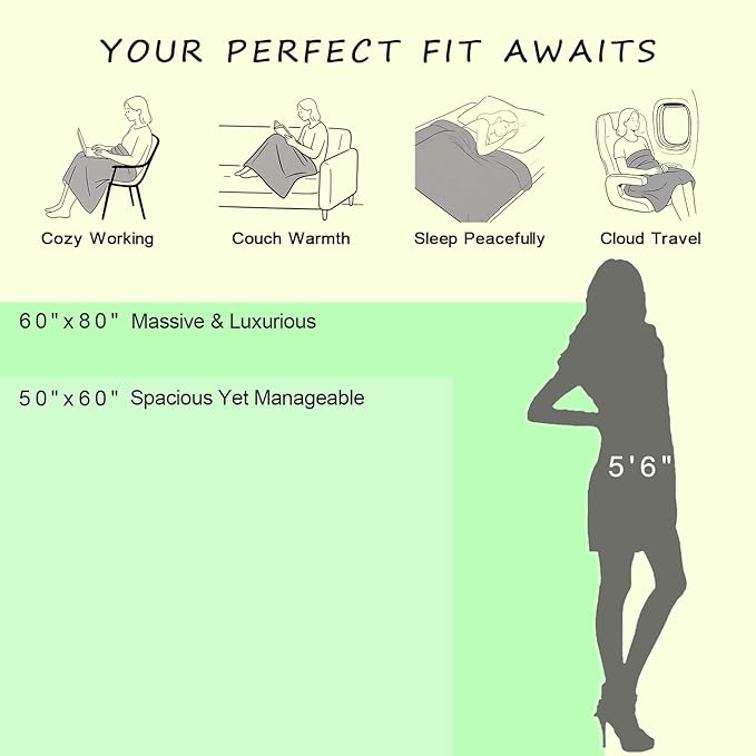 - LIGHTWEIGHT, WARM THROW BLANKET: 50 x 60 in (127 x 152 cm) / 2LBS. The perfect versatile size. Lightweight and keeps you nice and warm, suitable for all seasons. This throw blanket provides the perfect level of coziness.