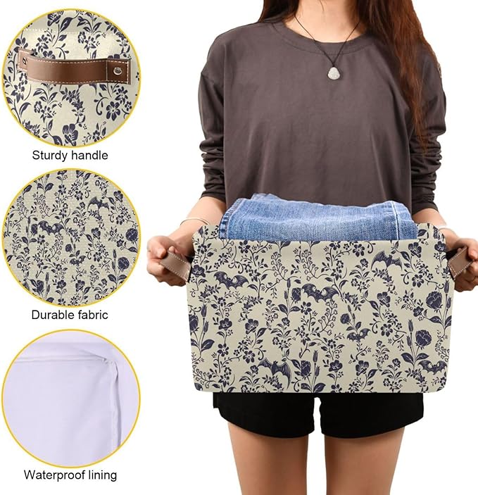 Storage Basket Bin Goth Bats Organizer Collapsible Shelf Basket Cube with Handle for Nursery Bedroom Bathroom